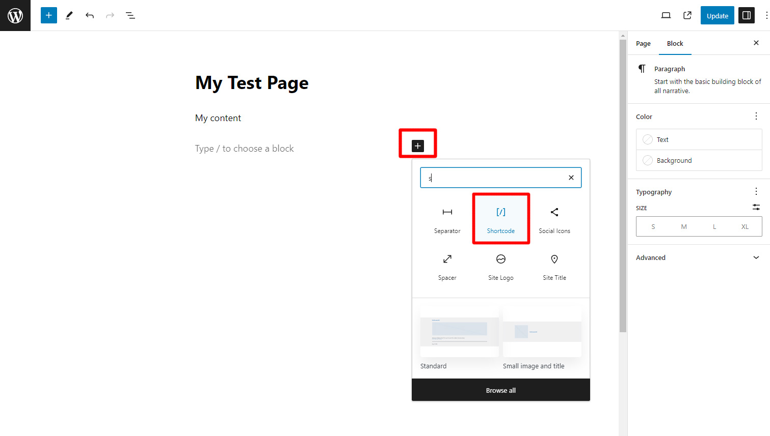 How to add a Shortcode to the page