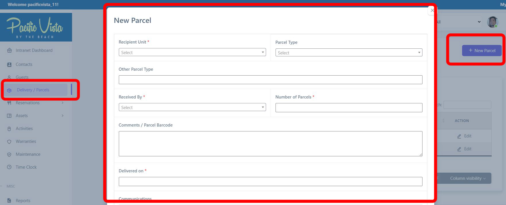 - New Parcel - Fill in all the necessary information in the fields and then click "Submit."