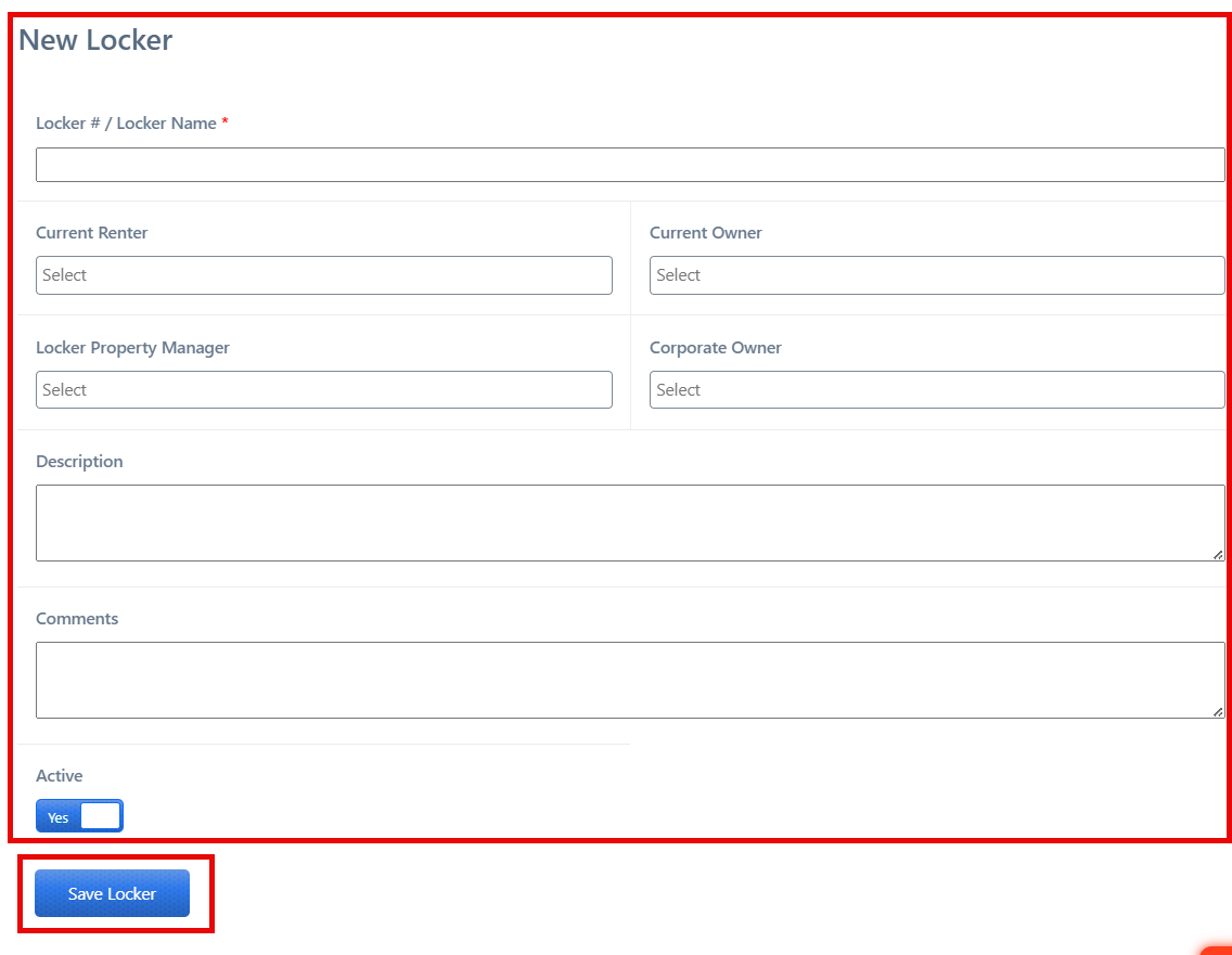 A “New Locker” button is also provided to add additional lockers. By selecting this option, users can input the required information and register new lockers in the system.