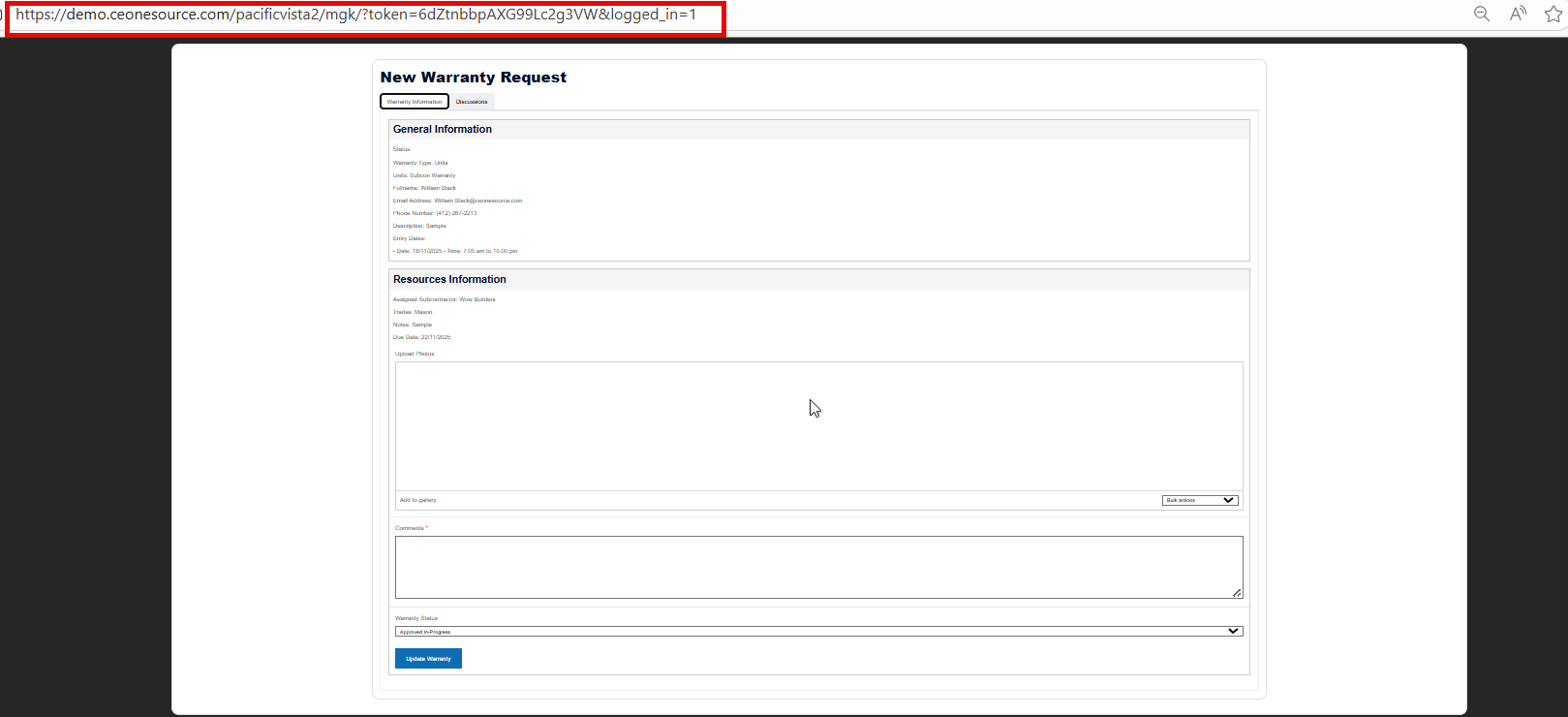 This feature simplifies the process of viewing, updating, or approving warranty requests while maintaining security and traceability.